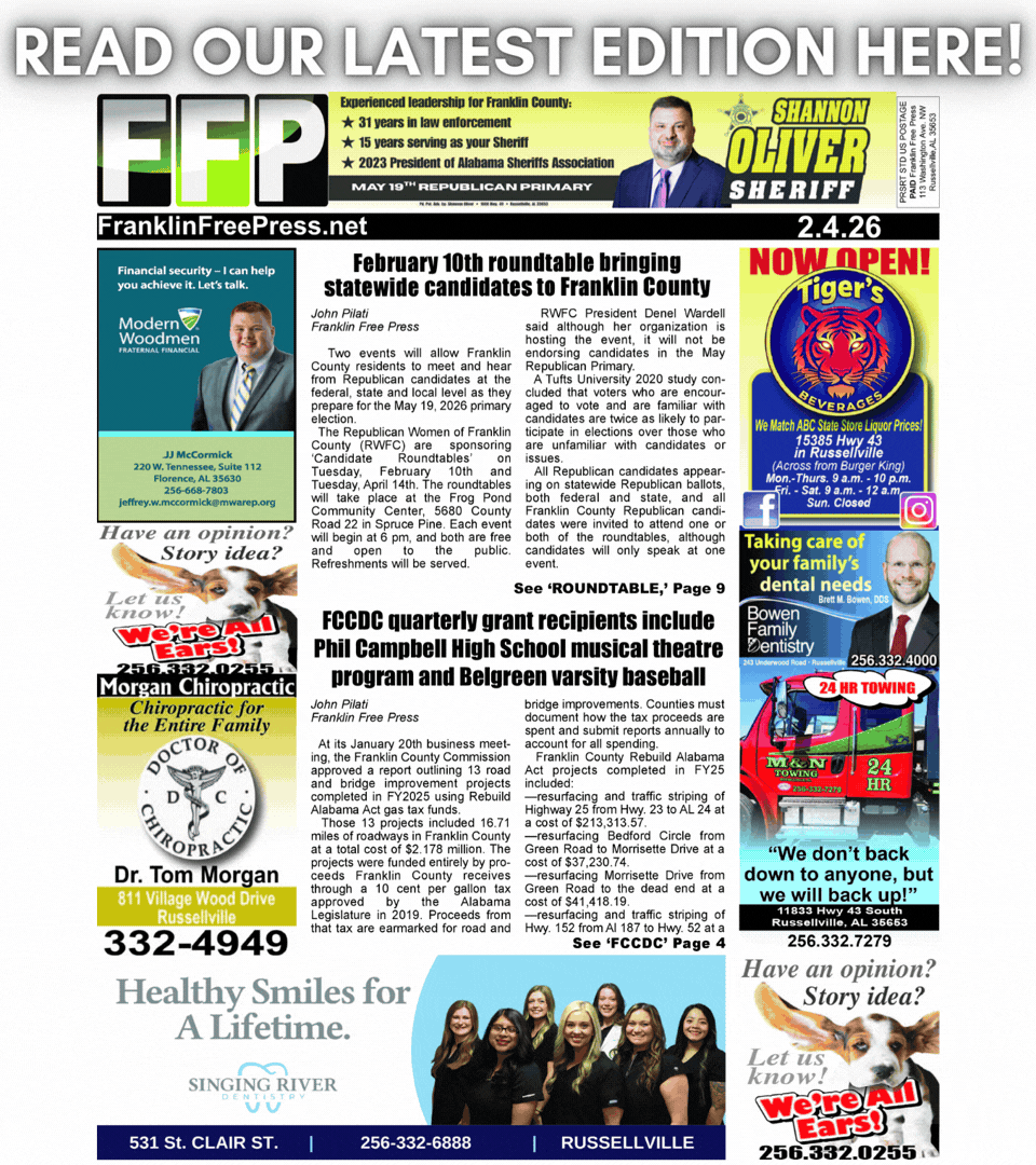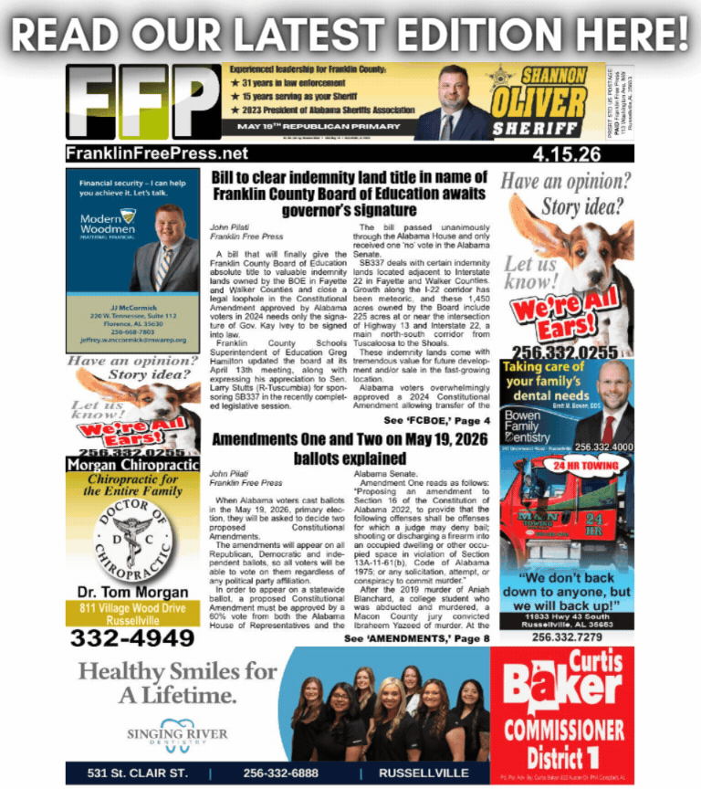Welcome to the Franklin Free Press, your hometown newspaper. This is the place for local Franklin County news that matters to you!